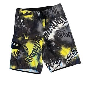 Billabong Mens Boardshorts Printed Mid Length Yellow Black Size 30
