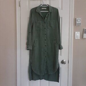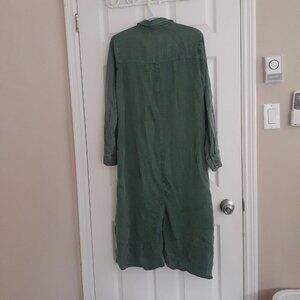 Billy T Women's Size S Pine Green City 2-way Collared Button Up Lyocell Dress