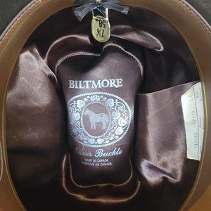 Biltmore, EUC, Size 7 1/4" or 58, Vintage Western Silver Buckle Moulded premium wool felt unisex hat, Buffalo colour (dark brown) with braided banding and silver tone hardware including a Maple Leaf (Made in Canada) The wool has a scratch on the underside of the brim (has not pierced through), which won't be visible when worn. Beautiful western hat perfect for the Calgary Stampede!!