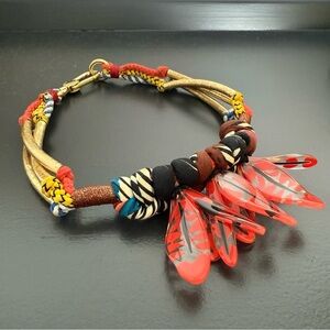 - Mixed materials: gold-plated brass, resin, silk and cotton cord