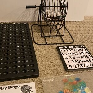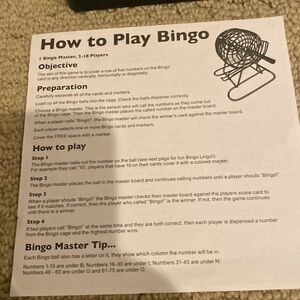 Classic, fun bingo game. Everyone always wanted to be the one spinning the cage and calling the numbers. This has been a blast but we are now ready to let it go. Fits nicely into the box. *please note the bottom of the box is damaged but everything is great with the actual game.