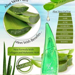 BioRLX 99% Purity Aloe Vera Gel with Collagen and Hyaluronic Acid for Face, Body and Hair & Soothing, Moisture, Sun Burns, Anti Wrinkle, Anti Aging, Razor Bumps, Dry Skin (250ml)