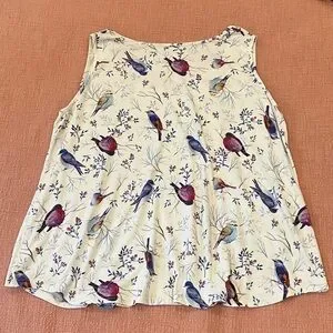 AI description Elegant tank top with vibrant bird print. Lightweight and stylish. Ideal for casual outings.