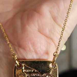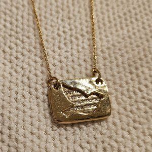 Bird and love message gold necklace