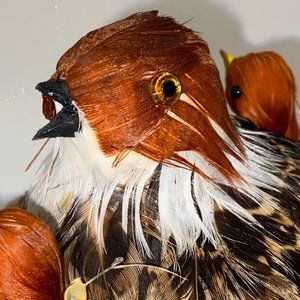 Bird in Nest Display Babies and Mother Feathers Decor Nature Wildlife Ornament