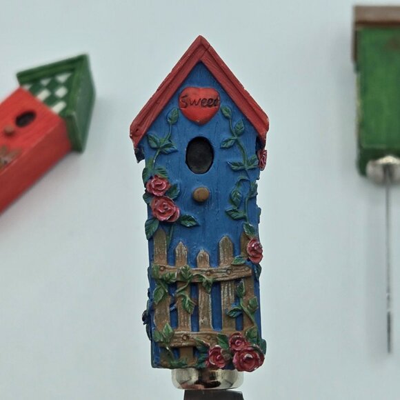 These are by far the sweetest cheese spreaders I've ever seen. Their gentle signs of previous love add a rustic charm that enhances their already adorable appeal. Each cheese spreader features a bright and detailed birdhouse handle — complete with flowers, picket fences, and warm "Welcome" and "Sweet Home" signs. Perfect for serving cheese, butter, spreads, or dips at your next gathering.