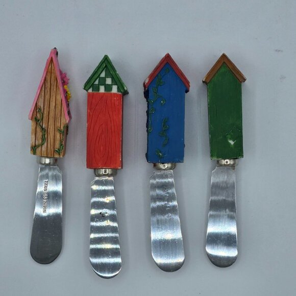 Birdhouse Cheese Spreaders – Set of 4 Colorful Butter Knives Garden Party Deco