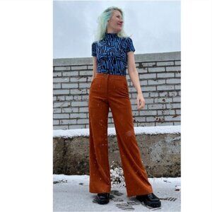 Birds of North America, Rust Orange Flare Velvet Pants, Fall, Autumn, Size 4
