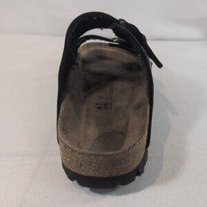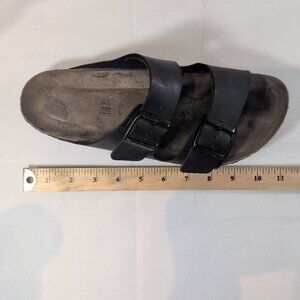 Birkenstock 41 Arizona Black Leather Sandals Pebbled Slip On 2 Strap Buckle 10