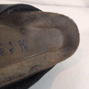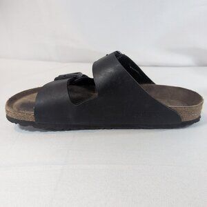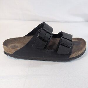 Birkenstock 41 Arizona Black Leather Sandals Pebble Slip On Slide 2 Strap Buckle
