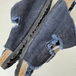 Birkenstock Arizona Shearling Sandals Navy Blue Suede Women’s 39 Fuzzy Cozy