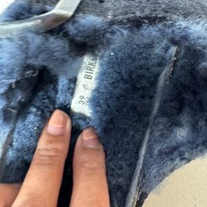 birkenstock arizona shearling, navy blue suede sandals, fuzzy birkenstock slides, women’s size 39 birkenstock, cozy winter sandals, shearling lined shoes, cork sole sandals, casual fuzzy slides, lounge wear sandals, comfortable house shoes, warm winter footwear, birkenstock
