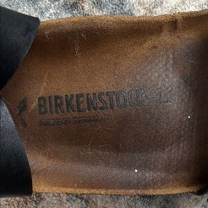 Step into comfort with these Birkenstock sandals, featuring a sleek black two-strap design and a rich brown contoured footbed. The sandals offer exceptional arch support and a deep heel cup, ensuring a perfect fit that molds to your foot over time. Ideal for those who value minimalist style and functionality in their footwear.