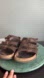 Birkenstock sandals, in well loved condition- cracks and damage to cork, wear on insole and bottom (see photos). Still have life, wear casually or bring to a cobbler to get resoled. Florida style, brown leather upper, classic cork insole, slip on style. Marked size 37