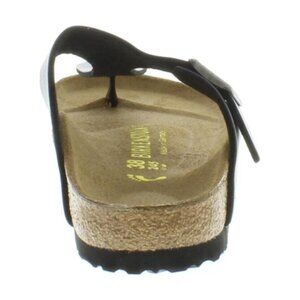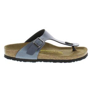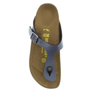 This women's thong sandal is set in a Birko-Flor upper, a unique material made of acrylic and polyamide felt fibers, a soft fabric with a smooth leather-like finish. Whether you are looking for color or shine for your Birkenstock sandal, you can count on the original Birkenstock footbed of sustainable cork, featuring pronounced arch support, a deep heel cup and a roomy toe box and covered with a suede liner. The footbed molds and shapes to your foot for unparalleled comfort. A true classic and icon of relaxed summer style, you'll love the Birkenstock Gizeh Birok-Flor.