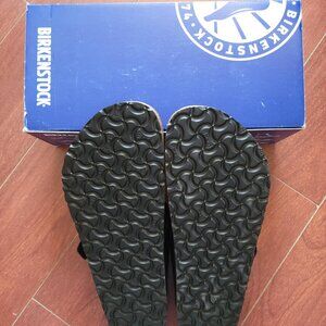 The Birkenstock Gizeh Birko-Flor in Black is a minimalist sandal with a leather-like Birko-Flor upper, contoured cork-latex footbed, and cushioned EVA sole. It features a suede lining, adjustable buckle, and ergonomic support for all-day comfort. Made in Germany.