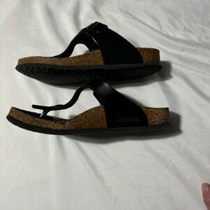 Classic and comfortable Birkenstock Gizeh sandals in sleek black leather! Featuring an adjustable buckle for a customized fit and the signature contoured footbed for all-day support. Perfect for casual outings, summer adventures, or daily wear. These sandals are in good condition, ready to give your feet that stylish, laid-back look with the iconic Birkenstock comfort.