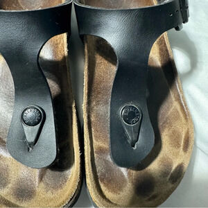 Classic and comfortable Birkenstock Gizeh sandals in sleek black leather! Featuring an adjustable buckle for a customized fit and the signature contoured footbed for all-day support. Perfect for casual outings, summer adventures, or daily wear. These sandals are in good condition, ready to give your feet that stylish, laid-back look with the iconic Birkenstock comfort.