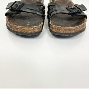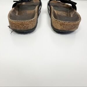 Condition: Pre-owned, foot straps are in good shape. The foot bed is quite dark but can be lightened with water and baking soda paste. The sole at the heel is worn but the rest of the sole is in good shape.