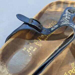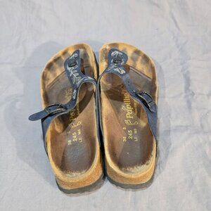 Birkenstock Papillio Navy Blue Embroidered Gizeh Sandals Women Size 7