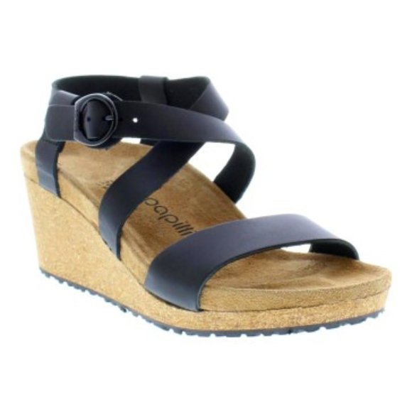 Meet the Sibyl, a strappy wedge heel sandal from Papillio. Stay comfortable and stylish with a lightweight footbed that promotes proper pressure distribution. The delicate circular buckle is an elegant eye-catcher to dress up any outfit. The upper is made from high-quality, smooth leather.