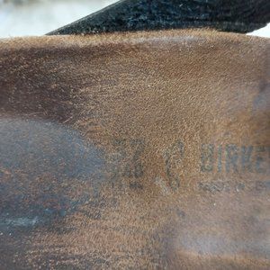 Check out these Birkenstock Women's Black Leather Gizeh Birki-Nubuck Mocha Thong Sandals in pre-owned condition, some wear and stains on the outsole and the insole, some wear on the metal hardware.