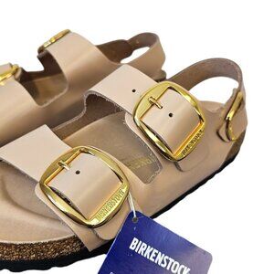 Birkenstock Womens Milano Big Buckle High Shine, New Beige, Narrow, 40 / US 9