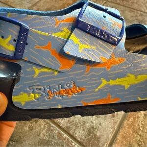 Birkis Blue Sandals with Orange and Yellow Accents size 40