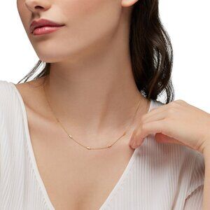 This 18kt yellow gold necklace is adorned with chic bars for a minimalist look. The rolo 25 chain, closes with a lobster clasp with a small Birks trademark tag.