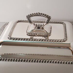Beautiful example of Canadian silver craftsmanship by Birks, featuring their Regency Plate line. This versatile silver-plated serving dish includes its original lid and detachable handle — the lid can double as a second serving dish or fit neatly inside as an insert.