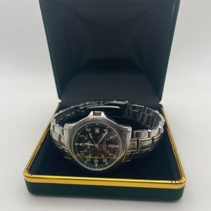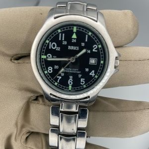 We have a beautiful Birks Sports watch in Stainless Steel with original Bracelet. In a beautiful Stainless steel with a Black coloured dial, Recently changed battery and Running wonderfully.