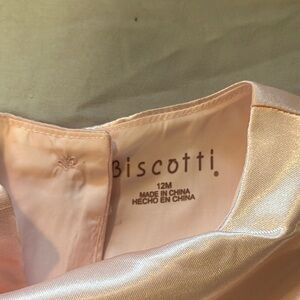 Elegant Biscotti dress in soft pink satin. Ideal for special occasions.