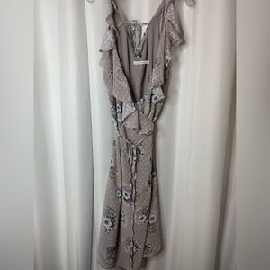Bishop + Young Flirty Wrap Dress. Brand sold at Anthropologie. Dress flaunts a lightweight textured fabrication for effortless wear.
