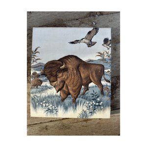 Bison 3D Picture Wall Decor Fabric on Wood Prairies Hawk