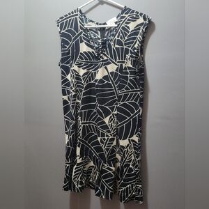 Bisou Bisou Black and Tan Leaf Print Dress L