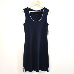 Bisou Jeans Medium Navy Blue Sleeveless Dress with Light Blue Trim NWT