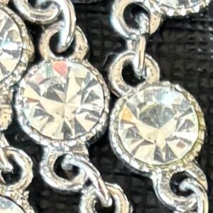 Three rows of clear rhinestones. Adjustable clasp closure.