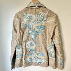 Biya Johnny Was Embroidered Floral Silk Blazer Size Large