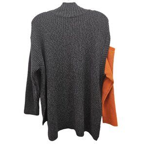Bize Knitwear Women's Charcoal & Orange Colorblock Cold Shoulder Knit Sweater Si