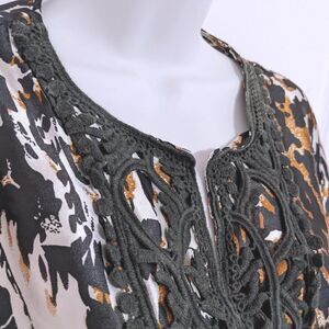 Bizz GIRL Leopard Print Chrochet Decor Boho Blouse Small @Y