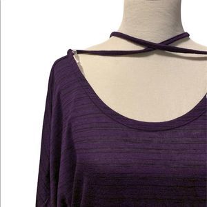 Bizz Girl | Purple & Black Wide sleeve Off Shoulder Top