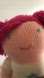 This charming handmade knit doll features vibrant pink hair and a cute blue star on her dress. Perfect for imaginative play and cuddling.