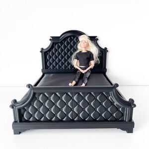 Black 1:6 Scale Tufted Chesterfield Bed for Barbie Integrity 12" Fashion Doll