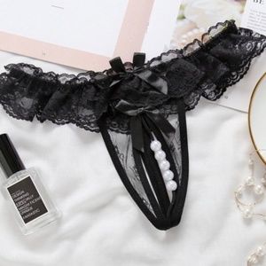 A beautiful Lace G String with a sheer split lace front panel and a string of 5 pearls.