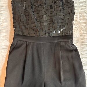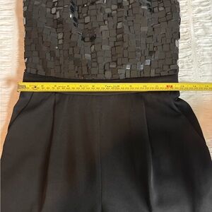 Elegant black jumpsuit with a sequin top. Perfect for evening events. Size 4. Measurements in pictures.