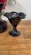 This beautifully coordinated pair of black amethyst dessert bowls is a timeless addition to any glassware collection. Both feature elegant pedestal bases and deep, glossy black amethyst glass that glows purple in strong light. A beautifully coordinated pair of black amethyst dessert bowls, both with ruffled edges but each boasting a distinct shape—one with soft floral waves, the other with crisp, four-petal symmetry.