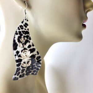 Black Animal Print Resin Big Dangle Earrings Black Long Earrings