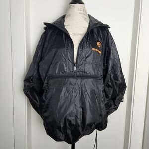 Sporty Black Waterproof long-sleeved Pullover Windbreaker shell Jacket with Hood and side Pockets, by ROCKPORT.