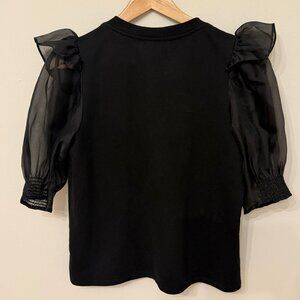 Black Anthropologie Top with Shoulder Ruffle and Sheer Sleeve, Small