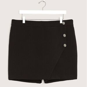 Comfortable. Classy. Edgy. Yes, all of that in one plus-size black skort! Made of elegant crepe, this skort features a unique asymmetrical front skirt and super comfortable shorts so you can move freely while looking refined.